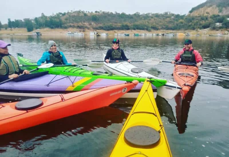 Cuando contactamos hablamos de un reto deportivo que habían acometido que consistió en navegar durante tres días en el que recorrieron los tres espejos de agua. Se organizó desde el espacio Mujeres en kayak pero se sumaron varios compañeros. Fue durante el 50 aniversario del embalse. Se quedaron cerca de hacer el perilago. Todavía tienen un objetivo para el  15 de abril de 2024: Recorrer completo el perilago.